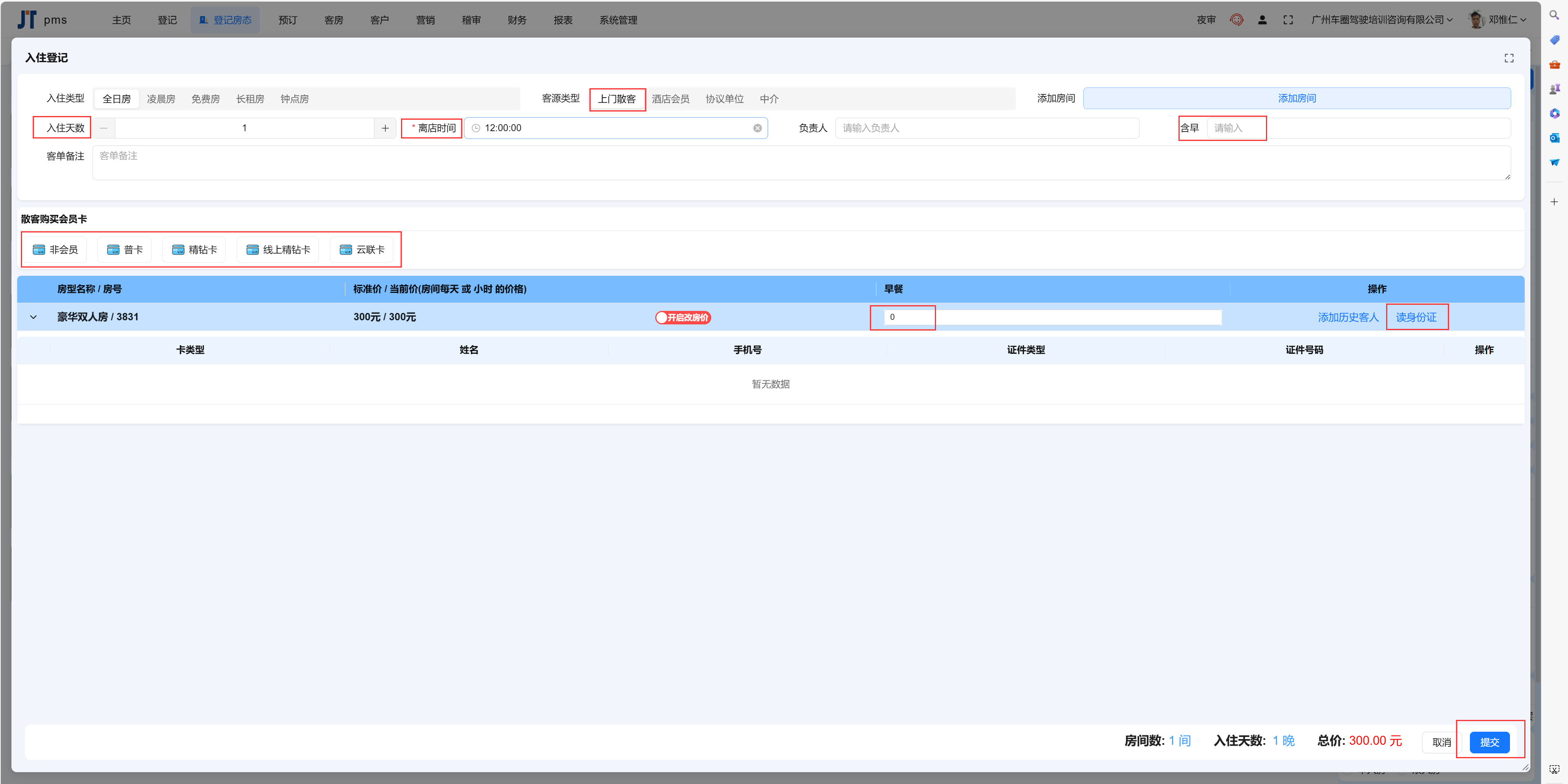 目录 搜索 业务操作基础数据支付设置微信支付登记中介开房散客开房会员开房协议单位开房退房续住部分结账结账退房退费办理会员入账(消费) 预付(付款)会员(新)联房旧系统功能办卡财务流水核销支付宝微信核销美团核销携程核销飞猪核销抖音核销京东核销内部核销说明核销结果说明前台业务办理规范系统文档主页更新日志集团平台实时房态便捷操作批改房态房间详情入住详情【续住】预订客房客户营销报表设置关于权限系统管理删除房间FAQ注册账号开通应用支付配置收款操作注意事项报表说明OTA单号常见问题远期房态排房交叉以及远期房量可售控制测试介绍酒店行业字典报表说明PC端报表小票打印机设置参考手机端报表出租情况运营报表 暂无相关搜索结果! 本文档使用 MinDoc 发布 散客开房 散客开房选择散客开房、填写入住天数、早餐、询问是否有会员、读取身份证后开房文档更新时间: 2024-07-31 10:02 作者:缪毅
