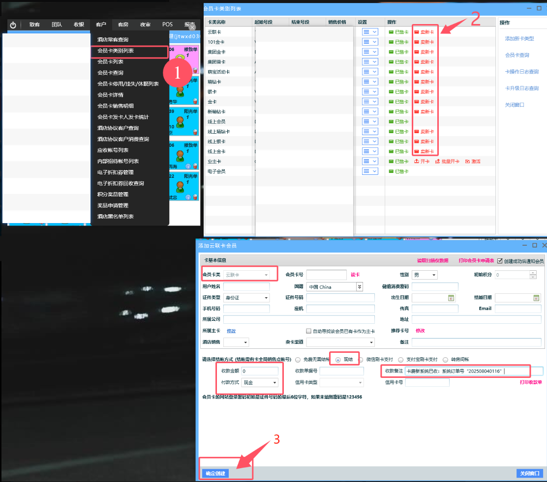 办理会员办理会员新系统只做收款业务,不做办卡业务。(办卡业务只在罗盘办理。)一,如客人需要办理会员,前台新系统房间里进行收款 二,罗盘办卡,不收款,不开房文档更新时间: 2025-08-13 12:04 作者:缪毅