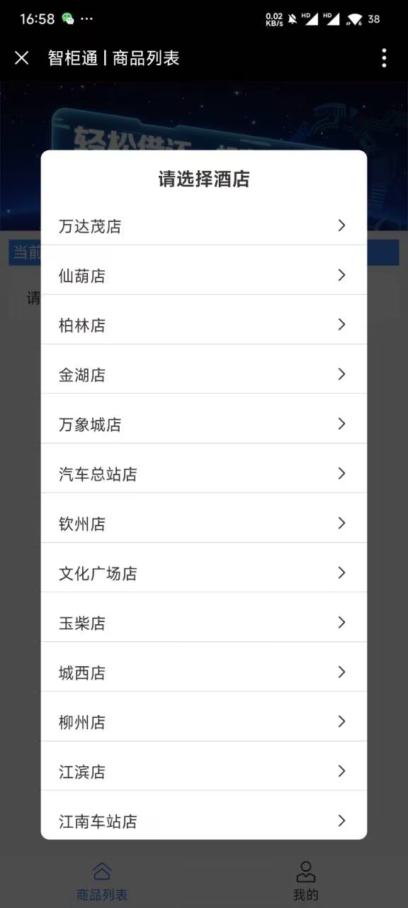 目录 搜索 前言正文应用入口身份认证核心操作明细手机端取货操作明细选择酒店操作方式选择机柜地址选择对应柜子选择需取用物品订单提交取用商品查看订单详情手机端补货操作明细选择酒店操作方式机柜管理选择柜子补充商品 暂无相关搜索结果! 本文档使用 MinDoc 发布 选择酒店 选择酒店进入应用后,通常会弹出选择酒店选择弹窗,可选择需要操作的酒店。文档更新时间: 2025-12-09 16:59 作者:韦绍杰