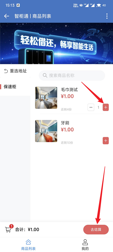 选择取用物品(支持多物品同时选择) 在右侧 “物品列表” 中,找到目标物品,点击物品右侧的【+】号(加号图标),物品会自动加入底部的部 “购物车”(购物车会显示已选物品合计金额,如); 若需取用多个物品,重复步骤 1 添加;若误加物品,可点击物品左侧的【-】号,也可点击购物车中的【-】号删除; 所有物品选择完毕后,点击底部【去结算】按钮。 文档更新时间: 2025-12-09 16:56 作者:韦绍杰